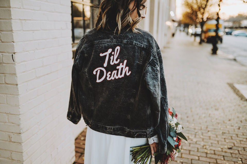 The most popular for outfitting the back of a jacket, bold script is achieved by outlining and tediously filling in between the lines.